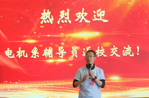 郑泽东介绍了电机系辅导员和研工助理情况,并回顾了自己从辅导员、学生工作组组长到主管学生工作的党委副书记,每个阶段的成长经历。